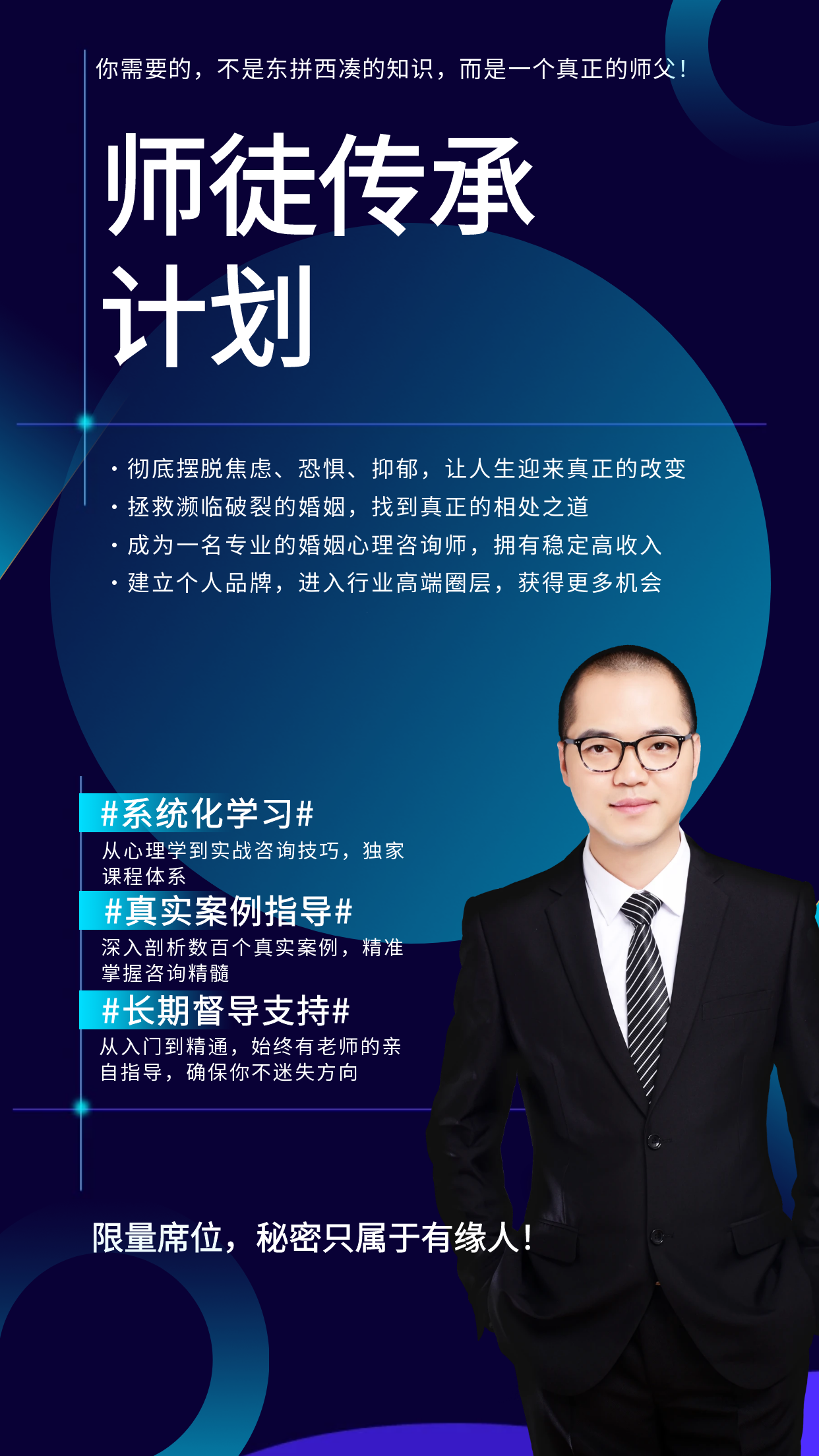 第二种选择:加入师徒传承计划,跟随一位真正的资深导师学习婚姻心理学、情感修复术、亲子教育体系、心理咨询技能,彻底掌握幸福的底层逻辑,让自己成为人生赢家!